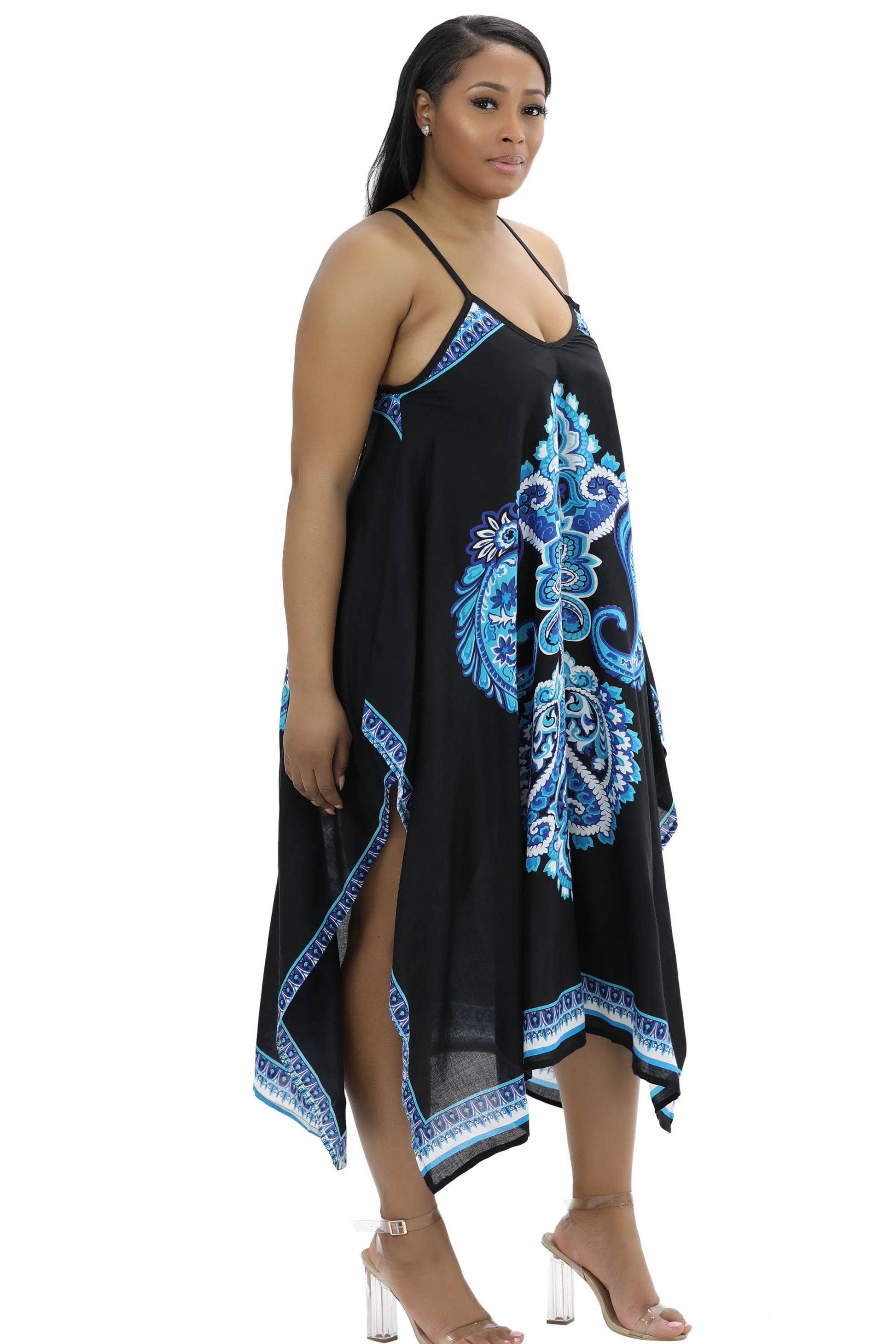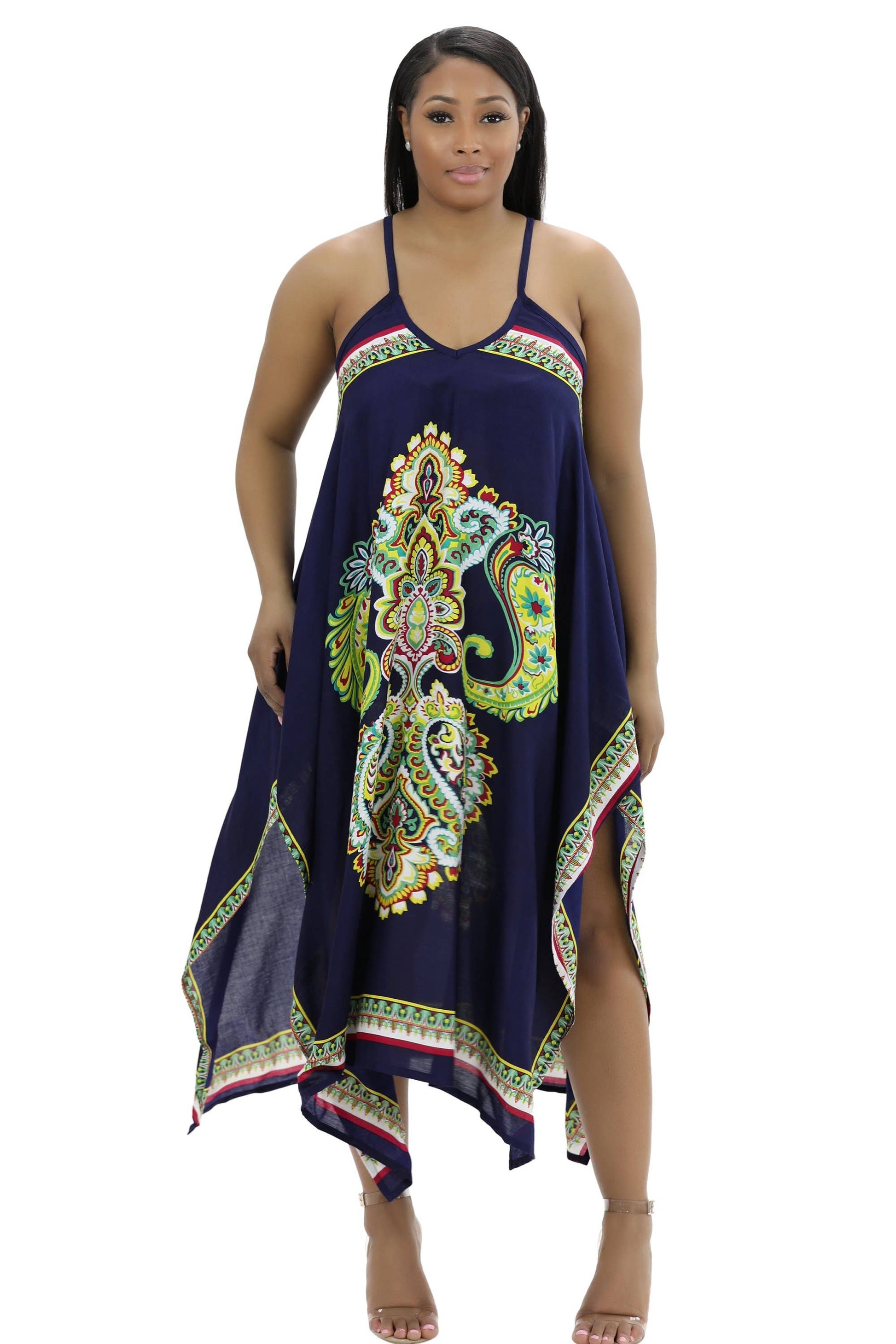 Add some flair to your summer wardrobe with this paisley-print sundress. Featuring a playful high split on each side, it's perfect for those who want to make a statement. Stay cool, comfortable, and stylish all season long. One Size Fits Most. Made in India 100% Rayon
