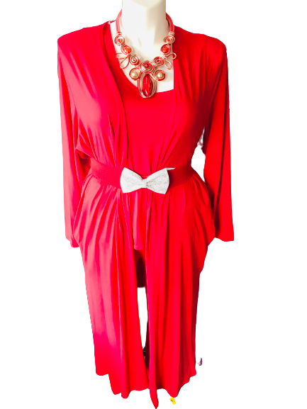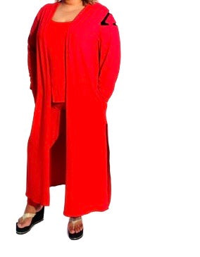 3 piece Set ( Tank, leggings, and duster with pockets). 96% Polyester and 4% Spandex