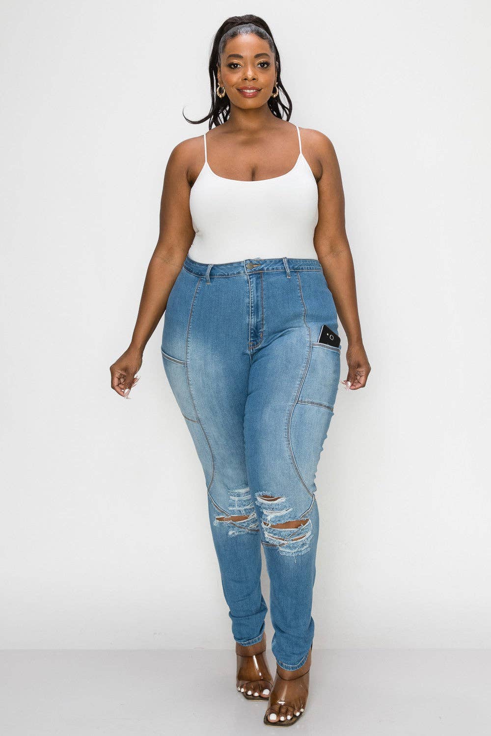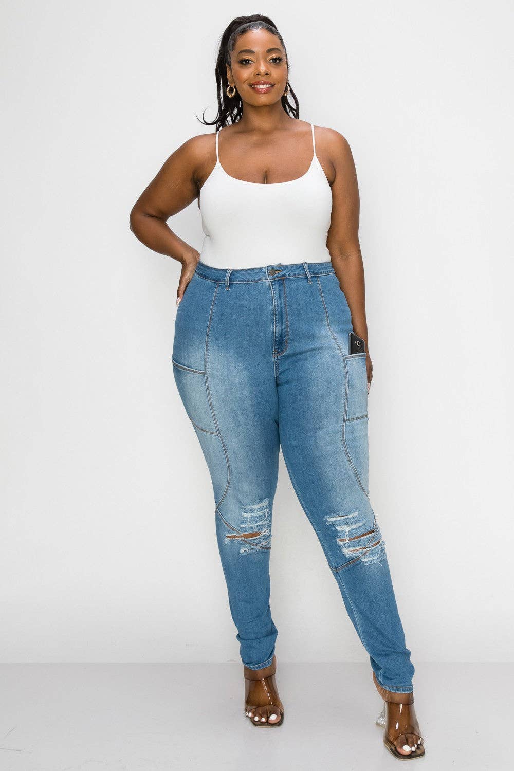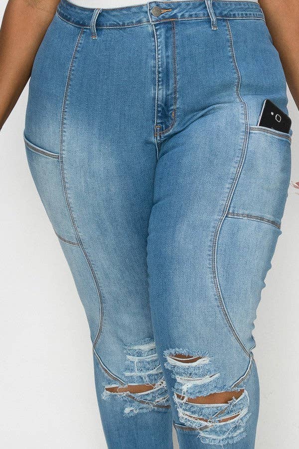 Get ready to rock your phone in style with these Luscious Jeans! The curvy and skinny fit, along with the cool knee destruction and hand sanding details, will make you stand out from the crowd. Plus, there's a convenient side pocket for your cellphone (because who has time to carry a purse anymore?!) These are not your ordinary skinny jeans - they are active, trendy, and ready to play!