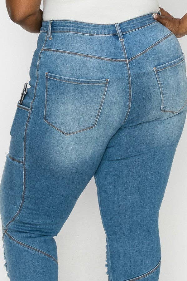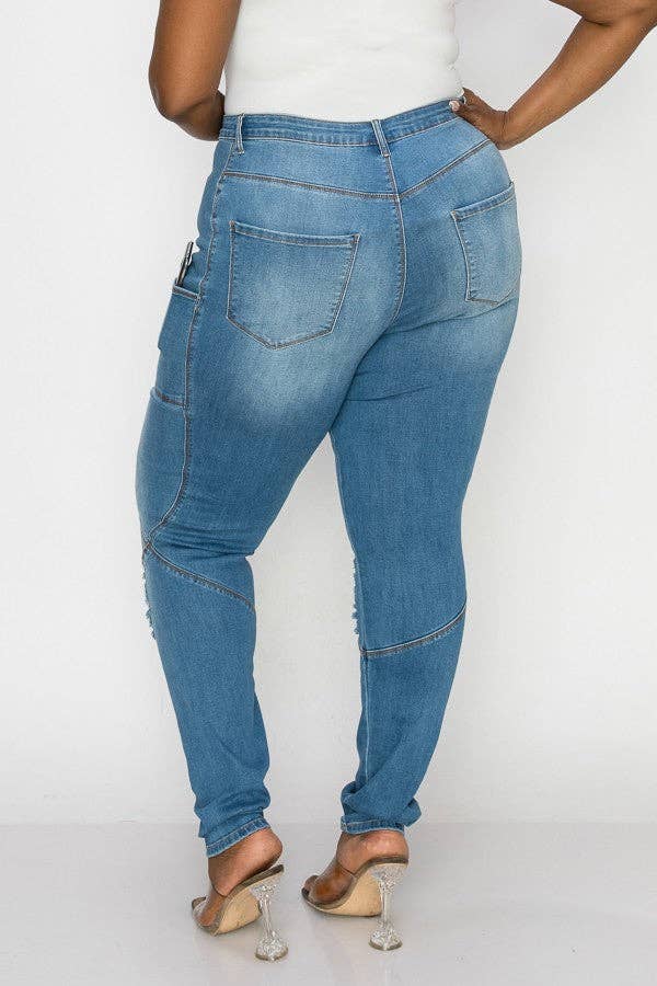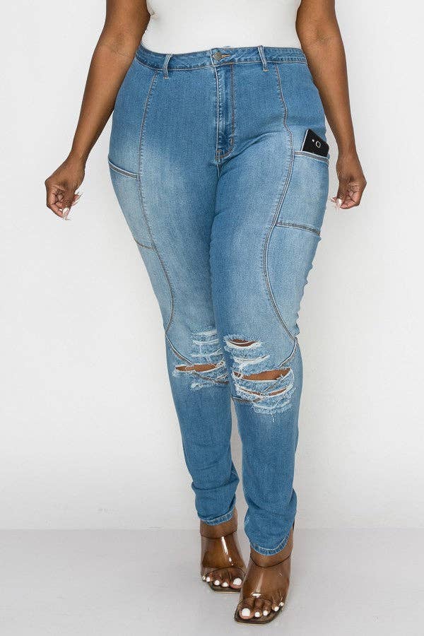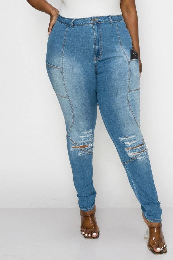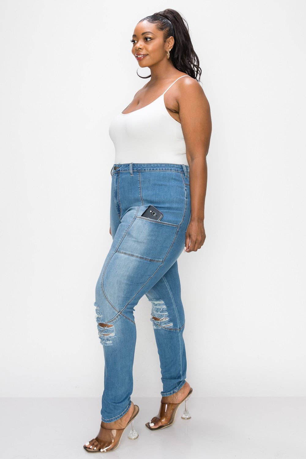 Get ready to rock your phone in style with these Luscious Jeans! The curvy and skinny fit, along with the cool knee destruction and hand sanding details, will make you stand out from the crowd. Plus, there's a convenient side pocket for your cellphone (because who has time to carry a purse anymore?!) These are not your ordinary skinny jeans - they are active, trendy, and ready to play!
