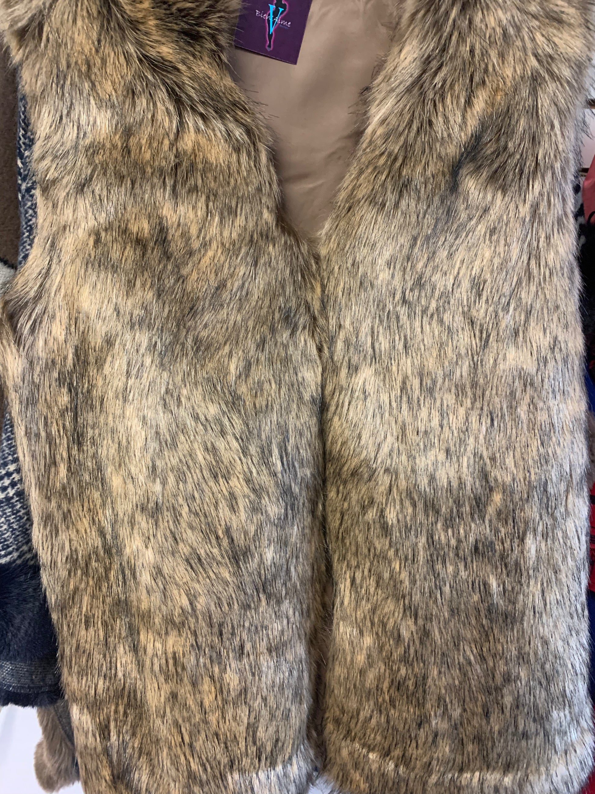One size Faux fur vest fits up to a 2XL with hook closure. This luxury faux fur vest is perfect for any occasion.