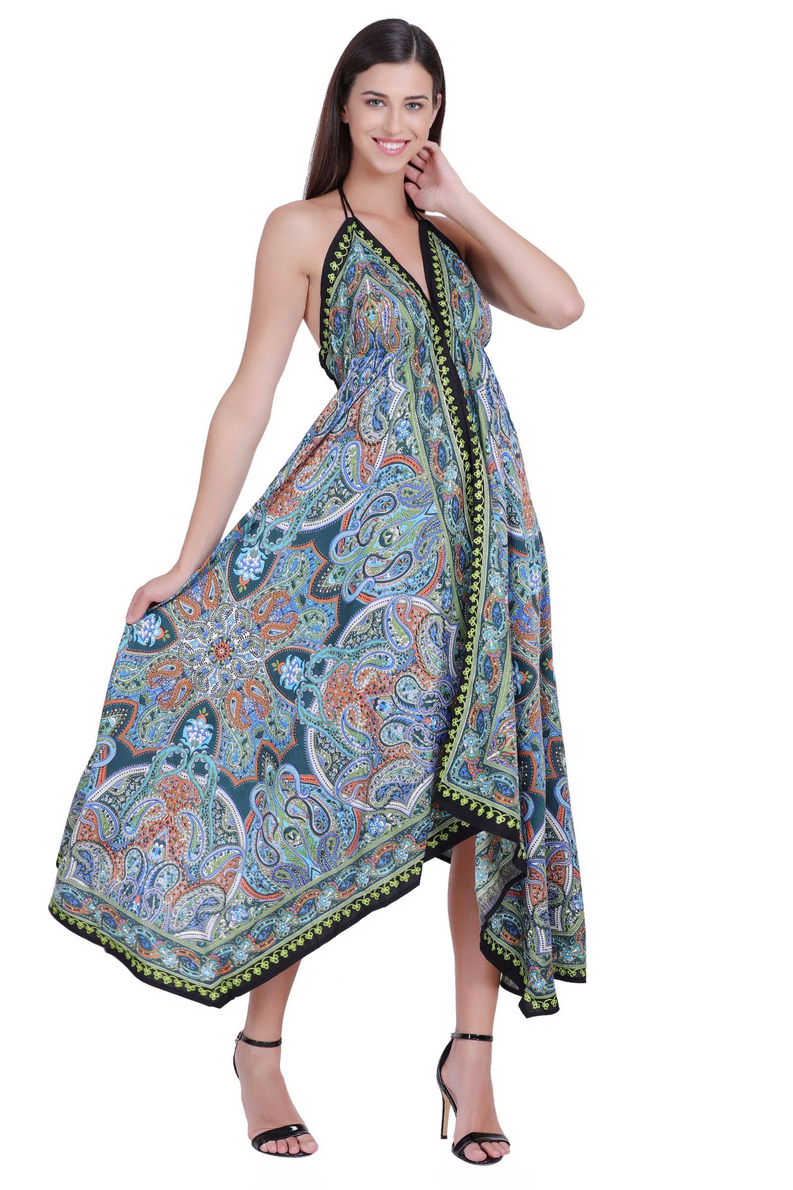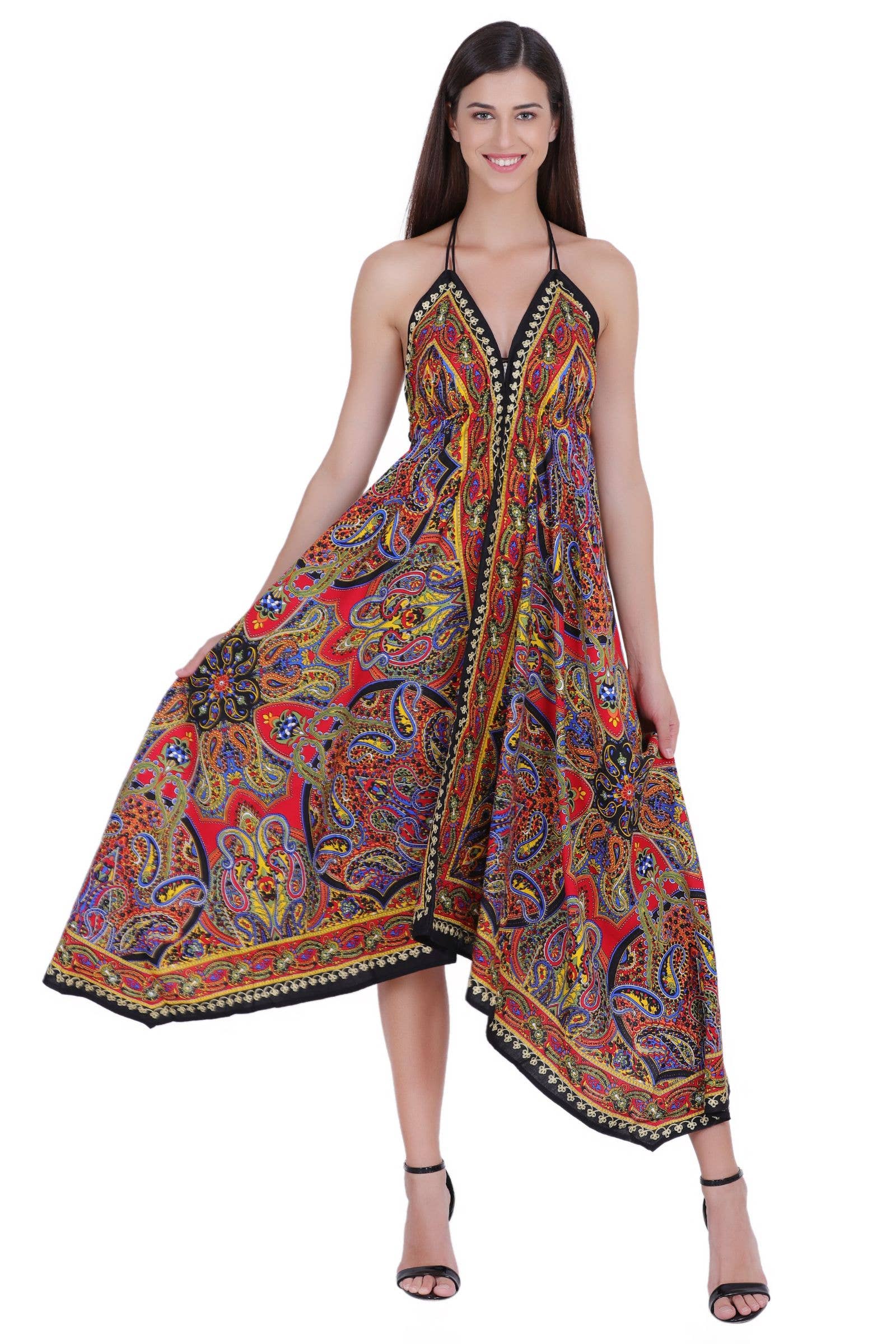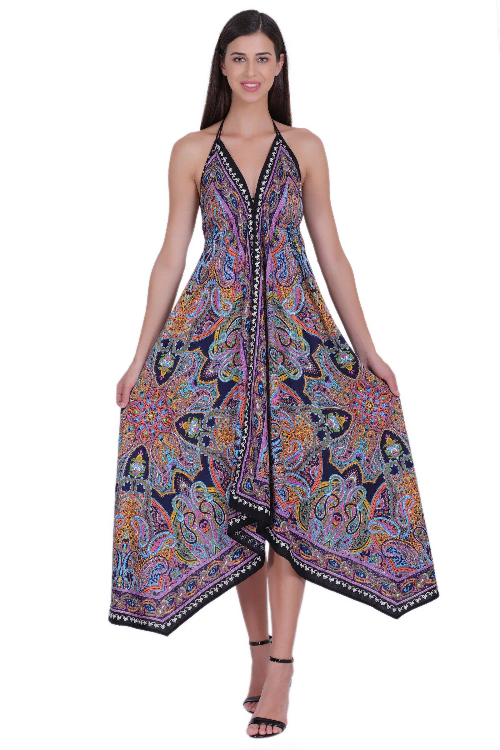 The PD9704 Scarf Dress from Advance Apparels is a perfect blend of bohemian aesthetic and modern style. Crafted with 100% Rayon fabric, this dress is designed to provide ultimate comfort for spring and summer seasons. Ideal for holiday occasions, it features a missy fit that flatters every figure. Care is simple, as this dress is hand washable. Reflecting the brand's commitment to fair wages and quality, this dress is a testament to the sophistication and elegance that Made-in-India clothing offers.